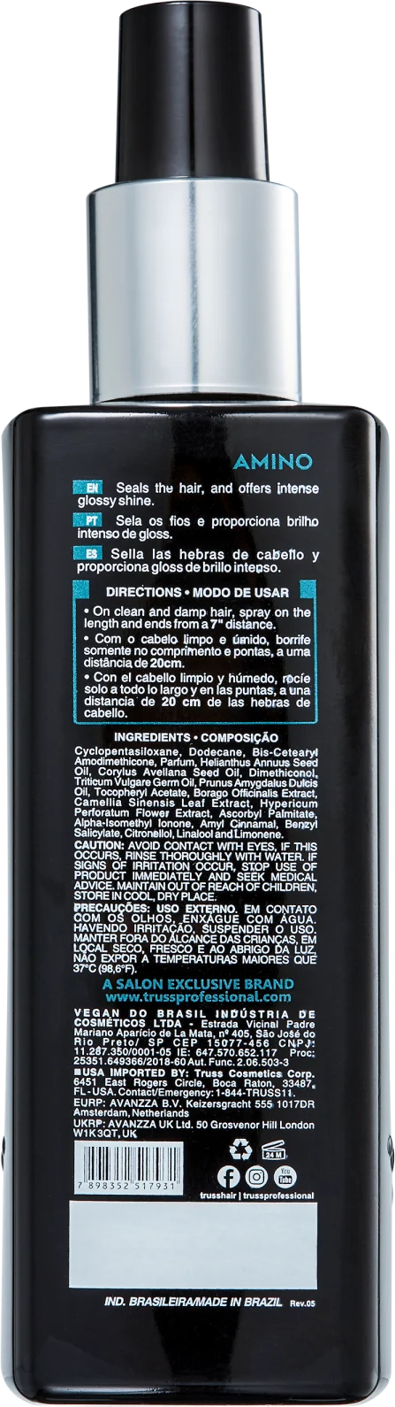 O Finalizador TRUSS AMINO é um protetor térmico para cabelos ideal para finalizar todos os tipos de fios. Ele assegura fios hidratados e protegidos contra os efeitos danosos do uso de ferramentas de calor. Além disso, torna mais fácil o processo de pentear e desembaraçar os cabelos, selando os fios de maneira eficaz.
